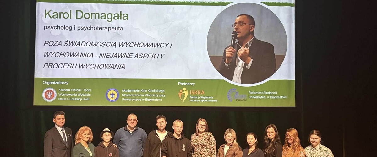 25 listopada 2025 r. na Wydziale Nauk o Edukacji Uniwersytetu w Białymstoku odbyło się kolejne wydarzenie z cyklu „Pedagog na rynku pracy”. Spotkanie zostało zorganizowane przez Katedrę Historii i Teorii Wychowania Wydziału Nauk o Edukacji UwB oraz Akademickie Koło Katolickiego Stowarzyszenia Młodzieży przy Uniwersytecie w Białymstoku. Partnerami wydarzenia byli Fundacja „Iskra” oraz Parlament Studencki Uniwersytetu w Białymstoku, których wsparcie miało istotne znaczenie dla realizacji przedsięwzięcia.